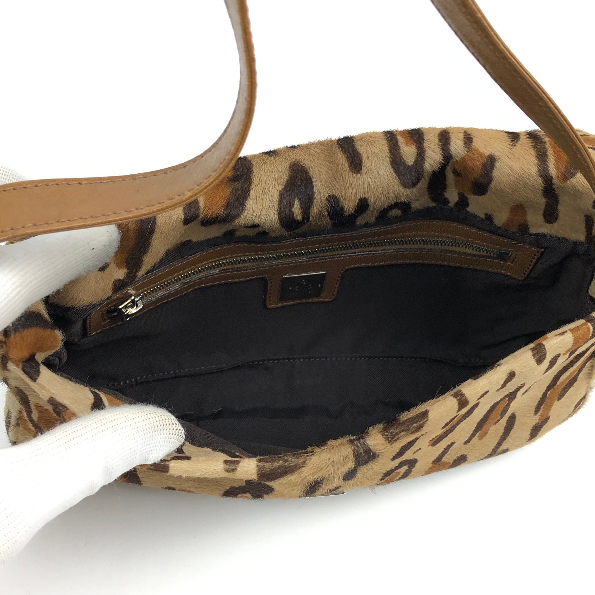 FENDI LEOPARD CALF HAIR BAGUETTE SHOULDER BAG
