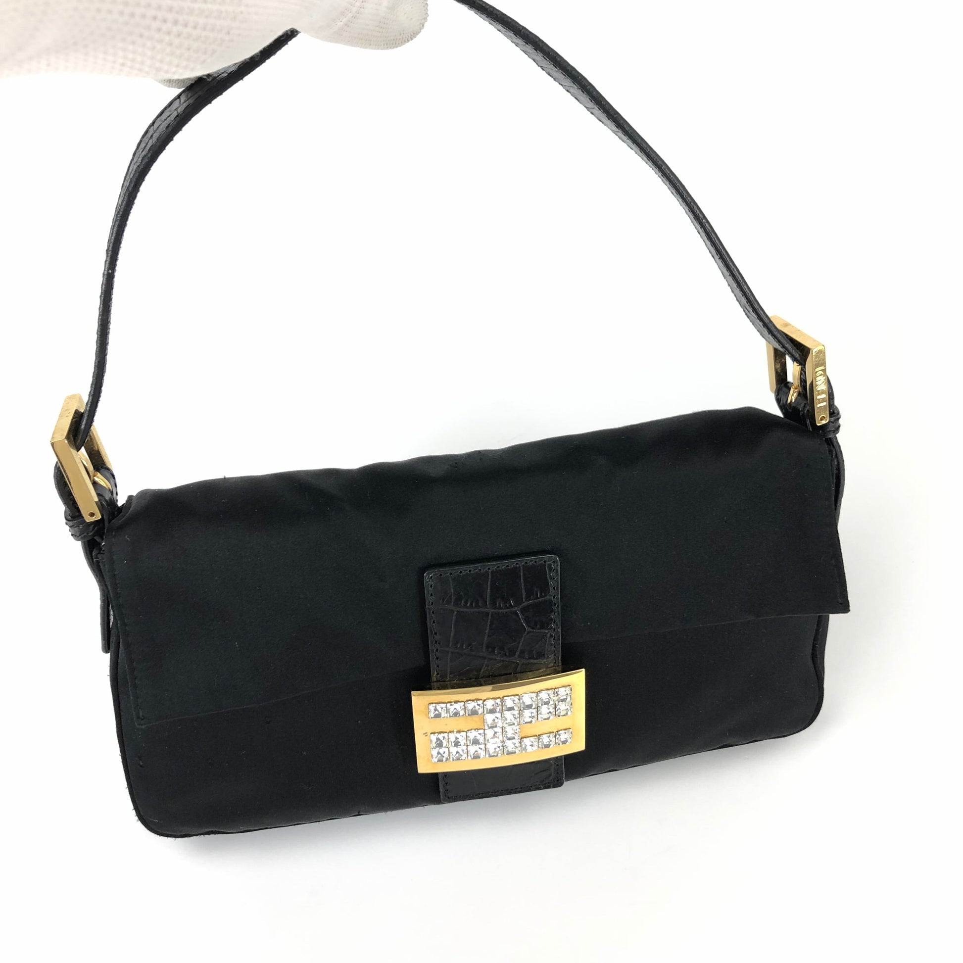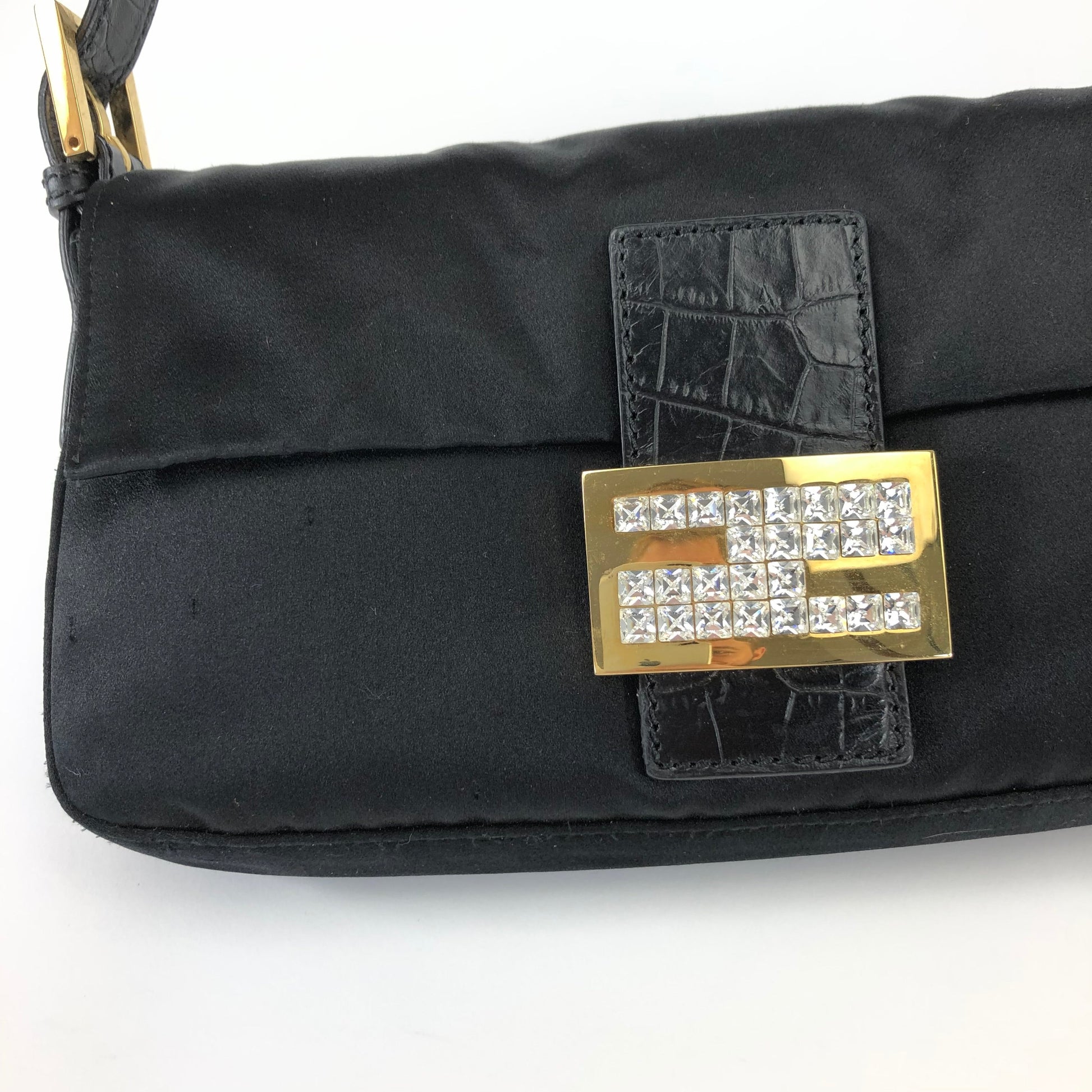 FENDI SATIN BAGUETTE BAG WITH DIAMANTÉ DETAILING